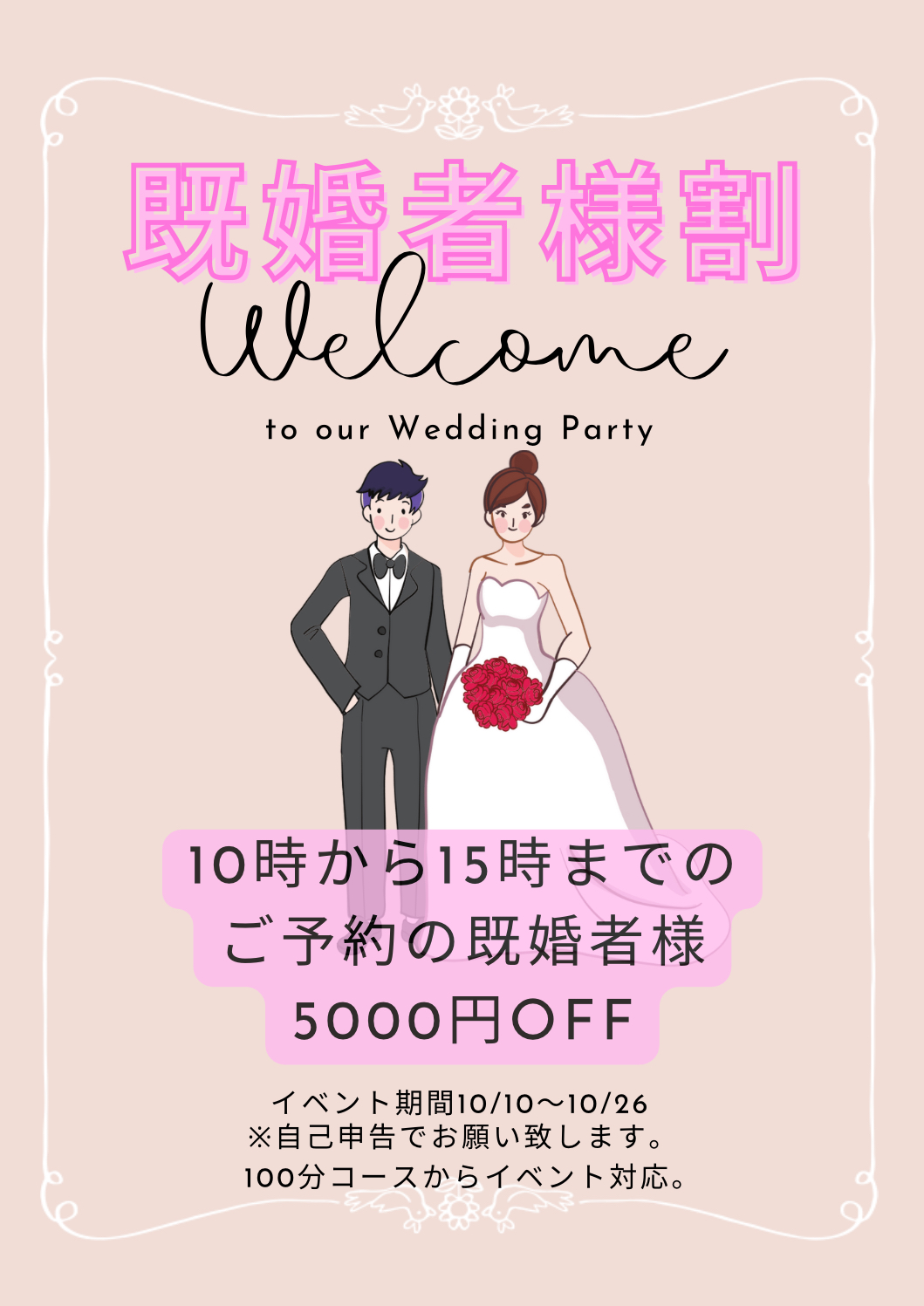 ※ご予約時に「既婚者割希望」とお伝えください。