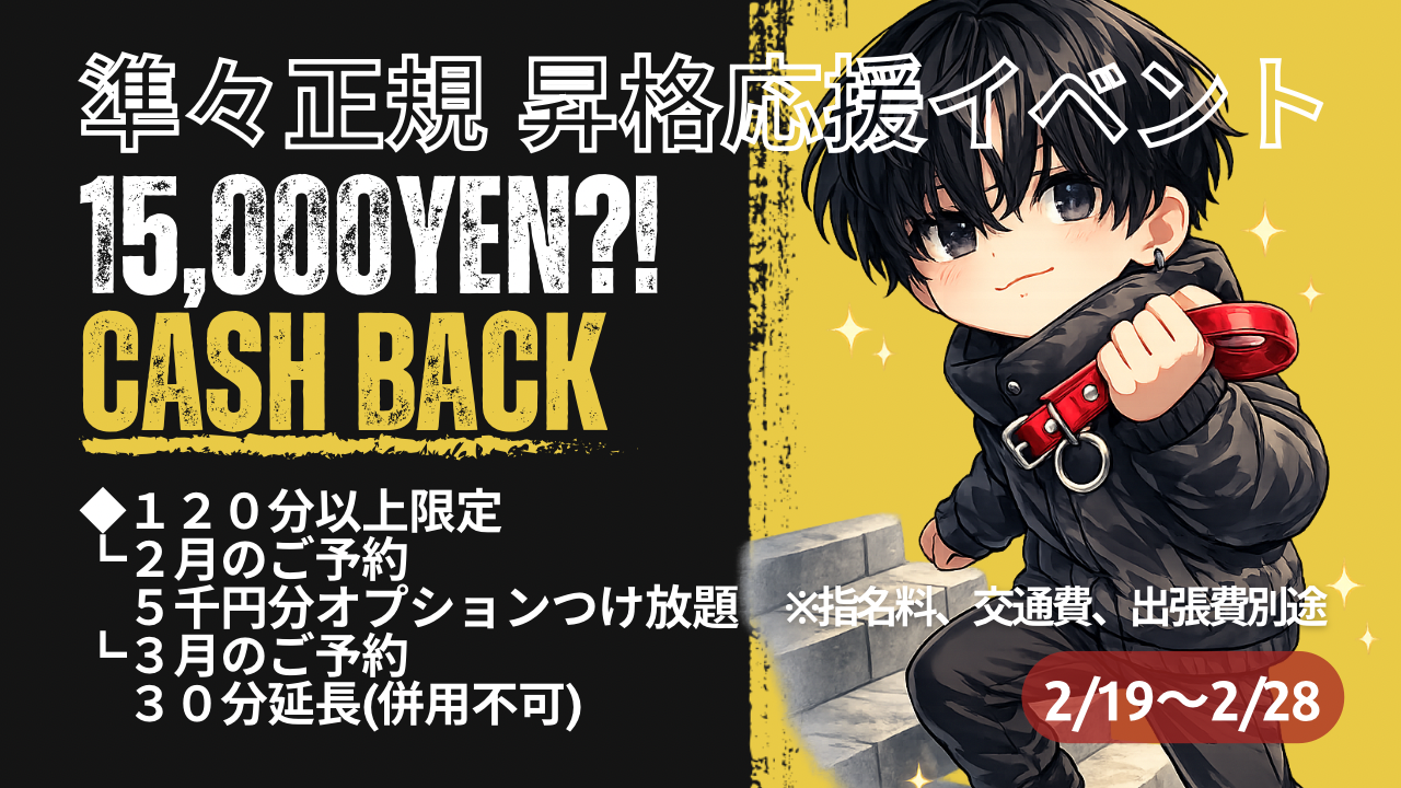 ・口コミをご投稿頂いた特典として、次回ご利用時のコース時間に無料の延長分をお付けします。