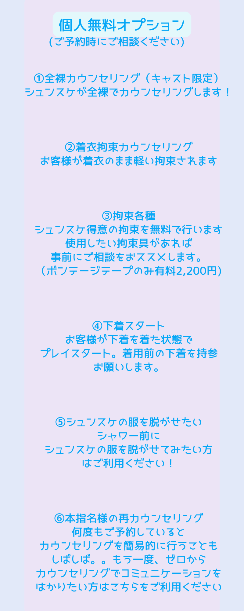 ・口コミをご投稿頂いた特典として、次回ご利用時のコース時間に無料の延長分をお付けします。