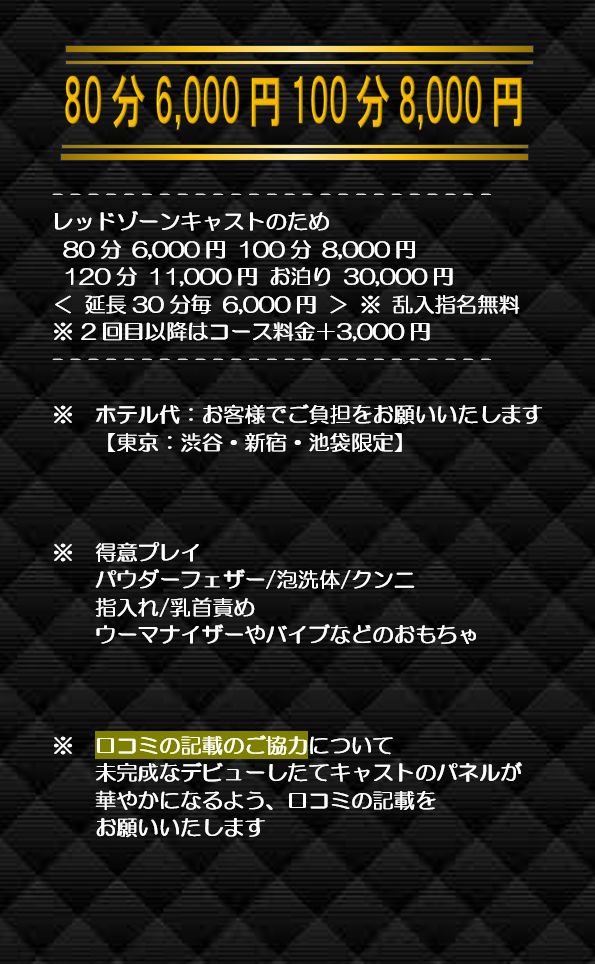 ※口コミ投稿したキャストにのみ口コミ特典の20分延長と1000円割引きが可能となります!