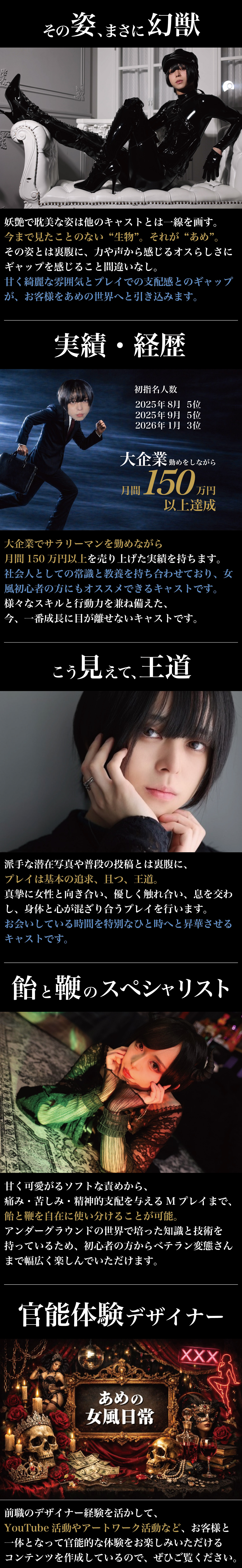 プレイの合間合間で空気や雰囲気を中断させることなくお水口移しで飲ませてくれたり、一分一秒余すことなく全ての流れが完璧で満足度が高いアメちゃん。