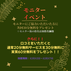・口コミをご投稿頂いた特典として、次回ご利用時のコース時間に無料の延長分をお付けします。