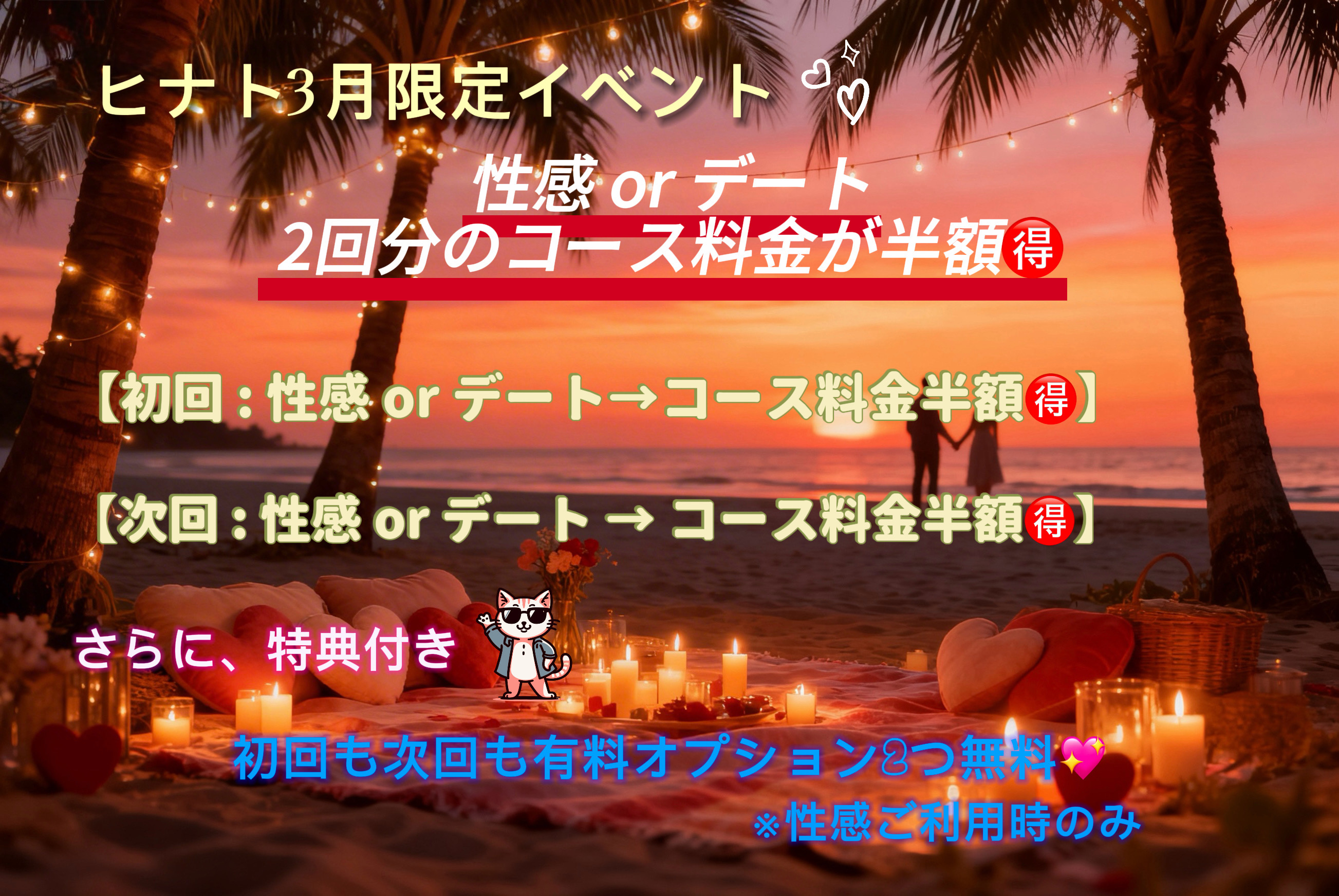 初回も次回も → 半額🉐で実質1回分🉐