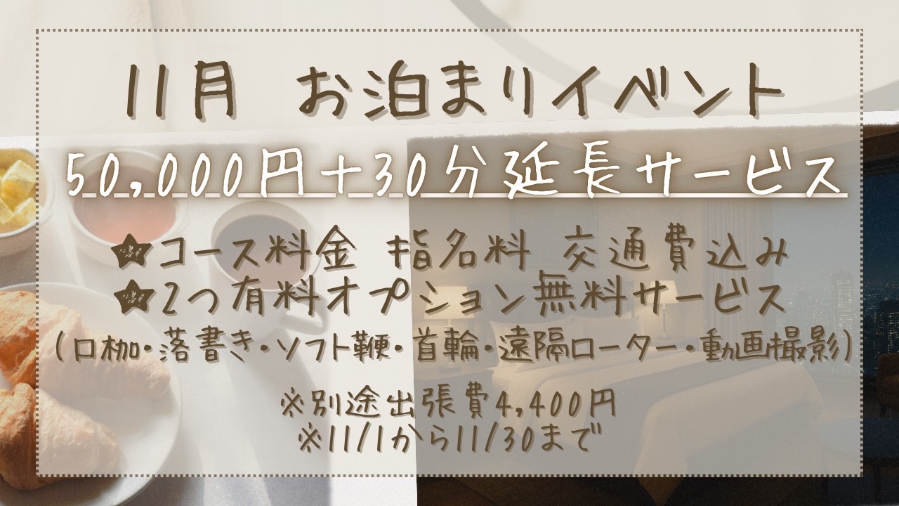 ・口コミをご投稿頂いた特典として、次回ご利用時のコース時間に無料の延長分をお付けします。