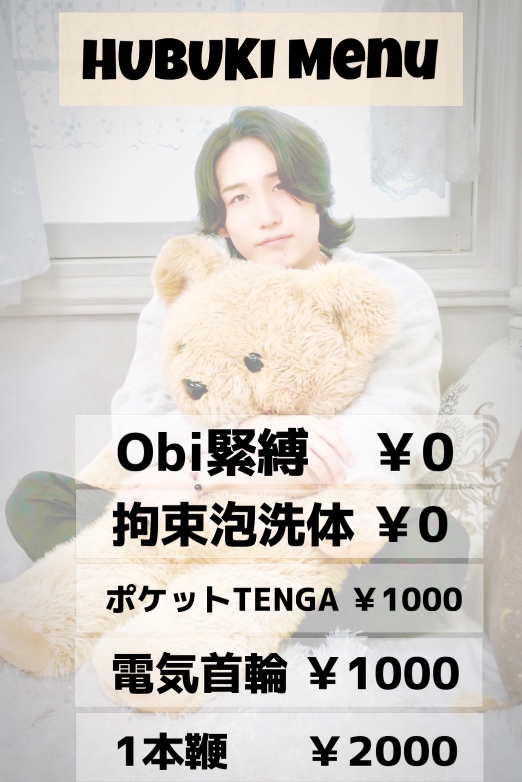 • Obiプレイ、首締め、噛み、鞭、パウダーフェザー、泡洗体、手マンクンニ、おもちゃ責め