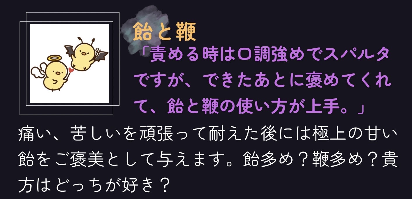 たまにいい子に出来た時の優しくて甘いところが沼なポイントでした🫠